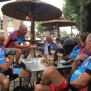 Afgelopen weekend hadden we het jaarlijkse fietsweekend. Het plaatsje Rhenen op de Utrechtse heuvelrug was de plaats van bestemming. Hotel ’t Paviljoen, waar het eten goed was en de drank rijkelijk vloeide. Drie mooie fietsdagen onder tropische omstandigheden. André Jorissen had de ritten uitgezet, uiteraard met kassei stroken en gravel paden. De eerste dag reden we via Heusden en Tiel naar Rhenen. De tweede dag reden we over de Veluwe met uiteraard de nodige beklimmingen. Ook was er volop gelegenheid om regelmatig te stoppen voor een frisse versnapering. De derde dag, op zondag, hadden we een drietal pontjes, daarna via Ravenstein, Hilvarenbeek weer terug naar Wernhout. Aan het eind een goede 400 km op te teller. Mede dankzij het mooie weer, het fijne hotel en de goede organisatie kunnen we terugkijken op een zeer geslaagd fietsweekend.